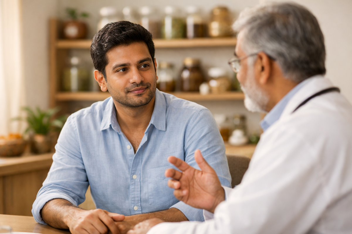 From an Ayurvedic perspective, male fertility is closely connected to digestion, metabolic balance, daily routine, and mental well-being. At Vedsutram, male infertility care is guided by Dr. Prashant Jain (BAMS, MD, Ph.D.), focusing on identifying underlying imbalances and supporting reproductive wellness through individualized Ayurvedic consultation rather than isolated symptom management.